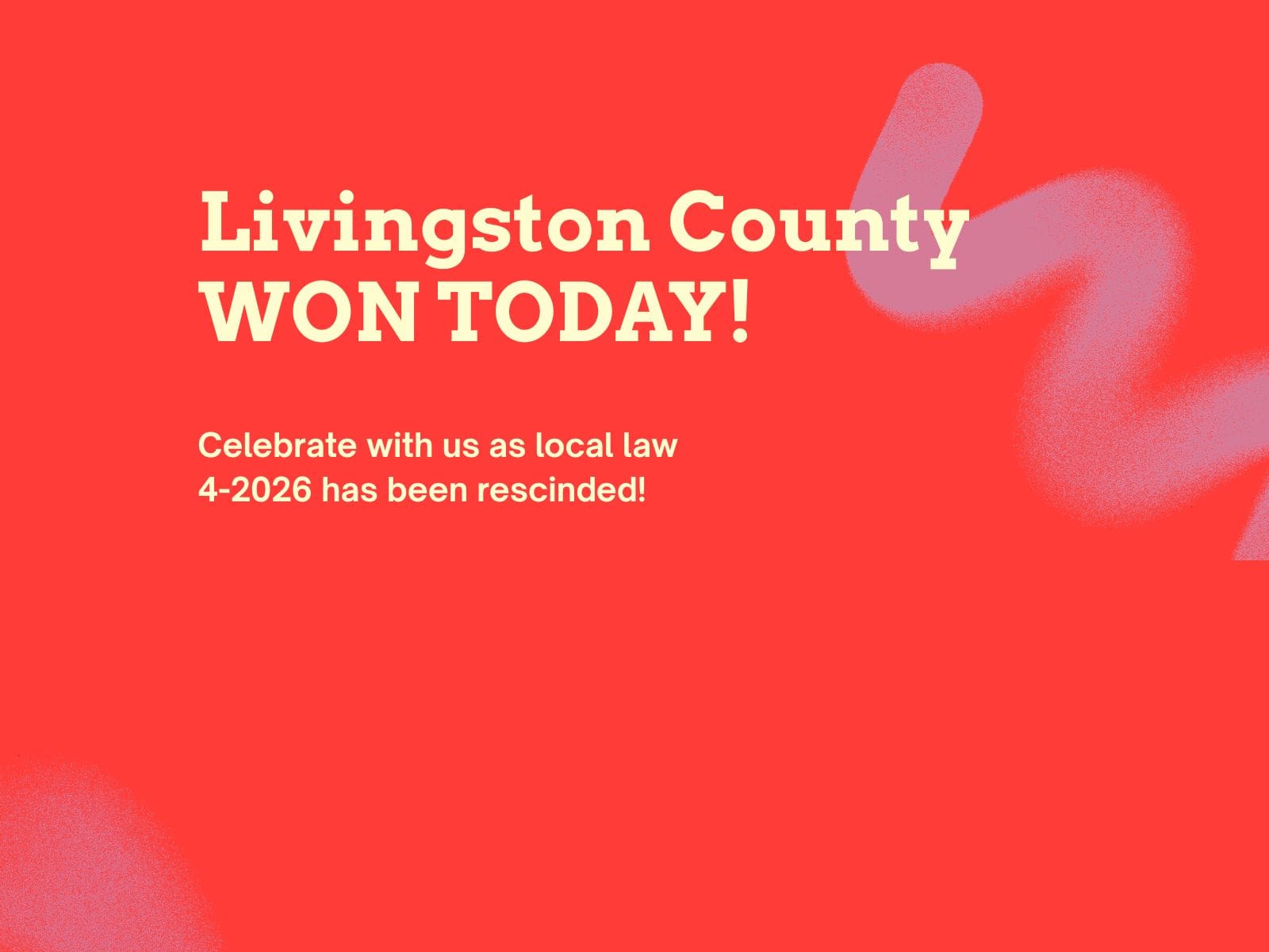 I’m contacting you to say THANK YOU. I was glad to see that you were one of five Livingston County Supervisors that voted against Local Law 4-2026.
