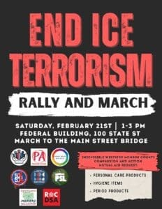 Category: Genesee Valley Indivisible Stand Up, Fight Back Saturdays - RochesterEvents / Category: Genesee Valley Indivisible Stand Up, Fight Back Saturdays - Rochester Stand Up, Fight Back Saturdays - Rochester 1:00 pm – 3:00 pmFebruary 21, 2026 ON THE ROAD Â Â CLICK THE RSVP BUTTON FOR EXACT LOCATION & PARKING INFORMATION Keating Federal Building, 100 State Street, Rochester, N.Y.View Location More information iCal Google View full calendar